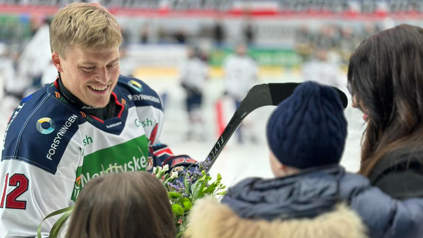 Det mest rørende øjeblik onsdag aften kom, da Rasmus’ søn Oliver trådte på isen og gav highfive til de startende White Hawks-spillere. Et øjeblik, der ramte lige i hjertet og mindede alle i hallen om, hvad klubidentitet, loyalitet og familie betyder her i Frederikshavn.