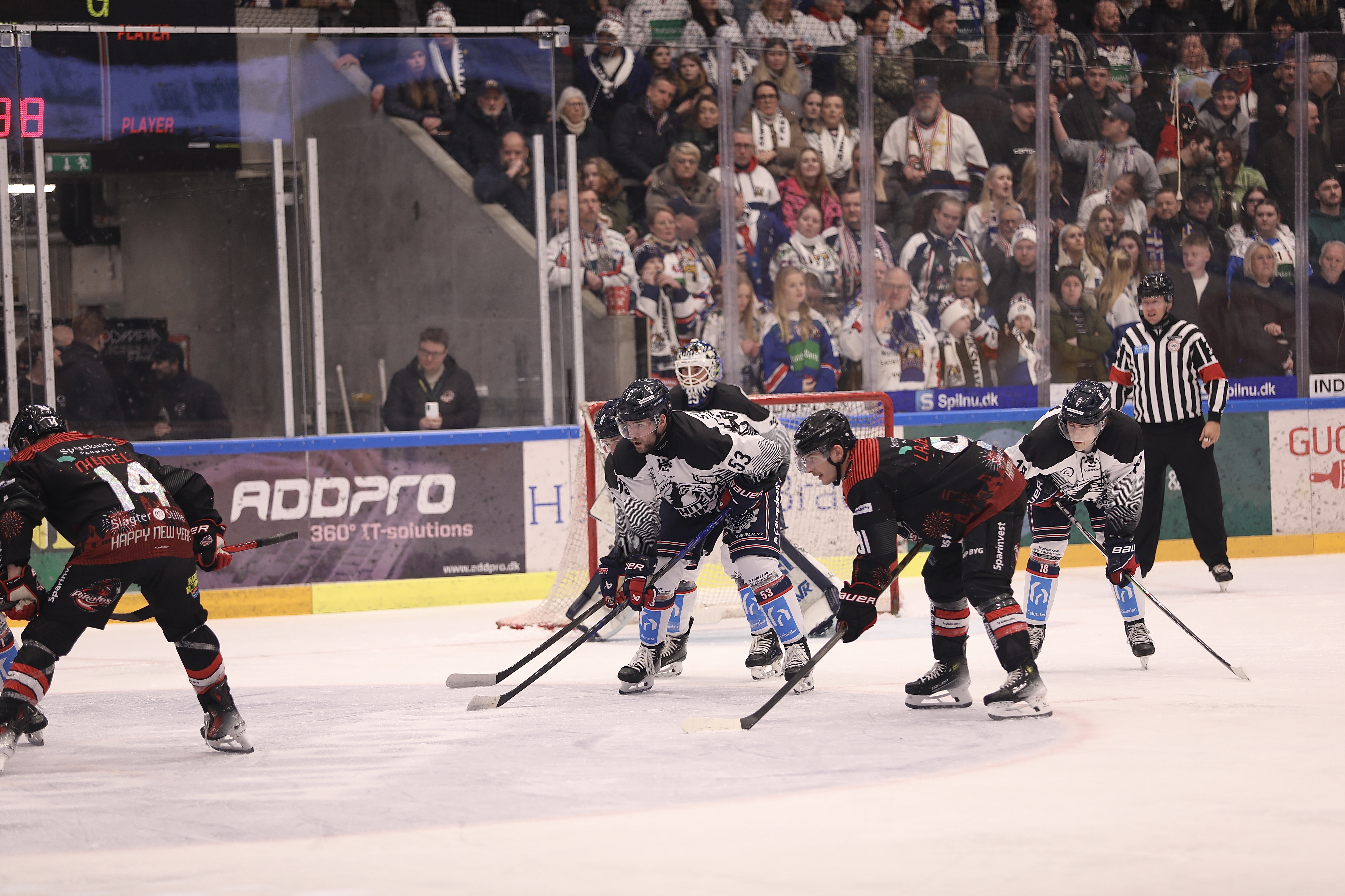 Akkurat som i aftes var der en elektrisk stemning til nytårsbrag del to, og der kan ikke herske tvivl om, efter den her weekend, at de fedeste lokalopgør spilles i Nordjylland. I aften skulle der overtid til, da White Hawks leverede et stort comeback i tredje periode. Bagud 3-1 inden de sidste tyve minutter, gjorde fanden ved holdet, og man leverede endnu en stor præstation. Dog var det hjemmeholdet der scorede i overtiden, men man kan trods alt være tilfredse med et point, som også, set over 60 minutter, var fortjent at tage med hjem i bussen.